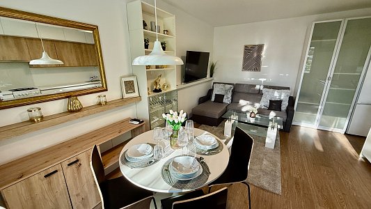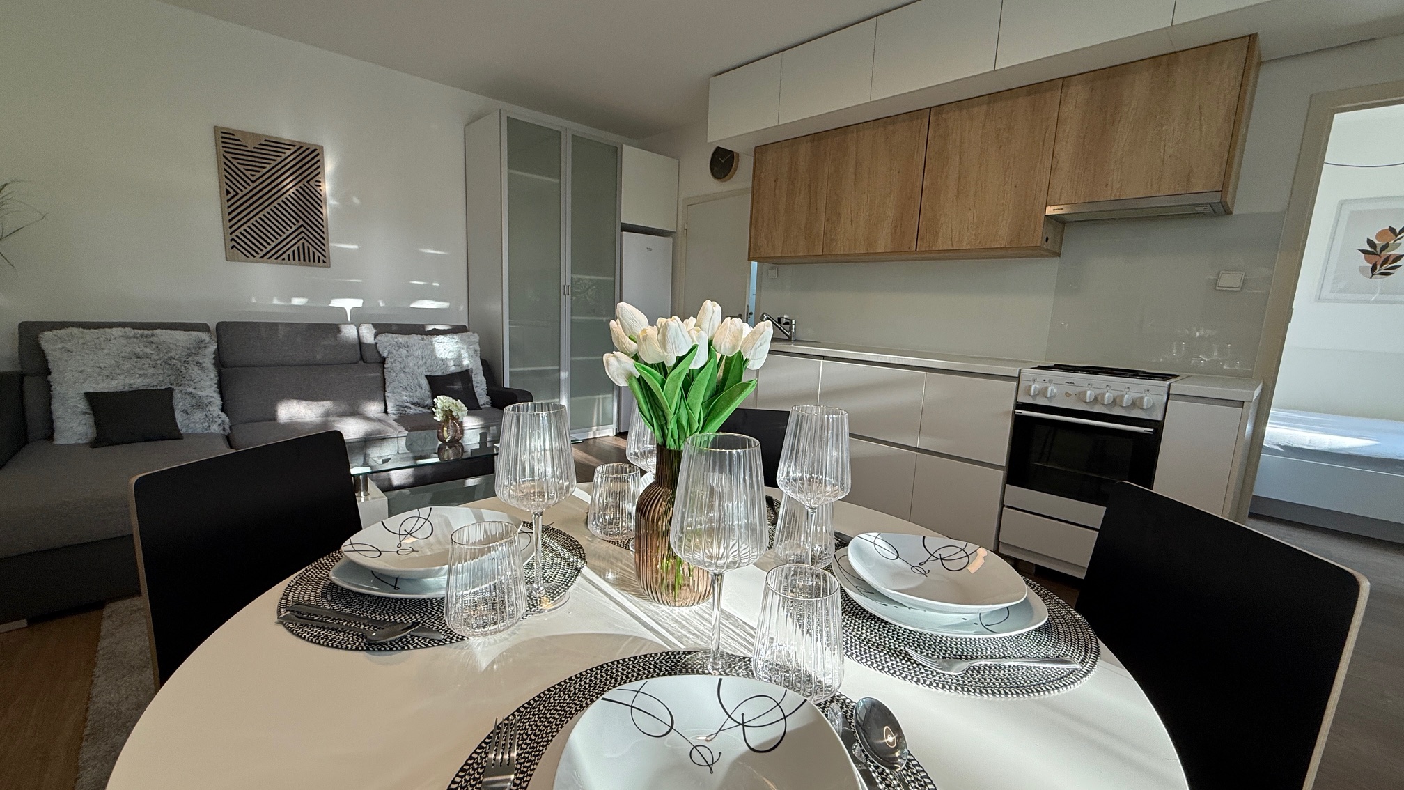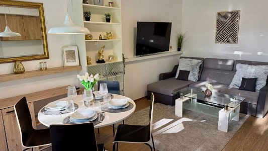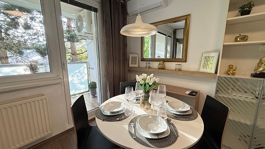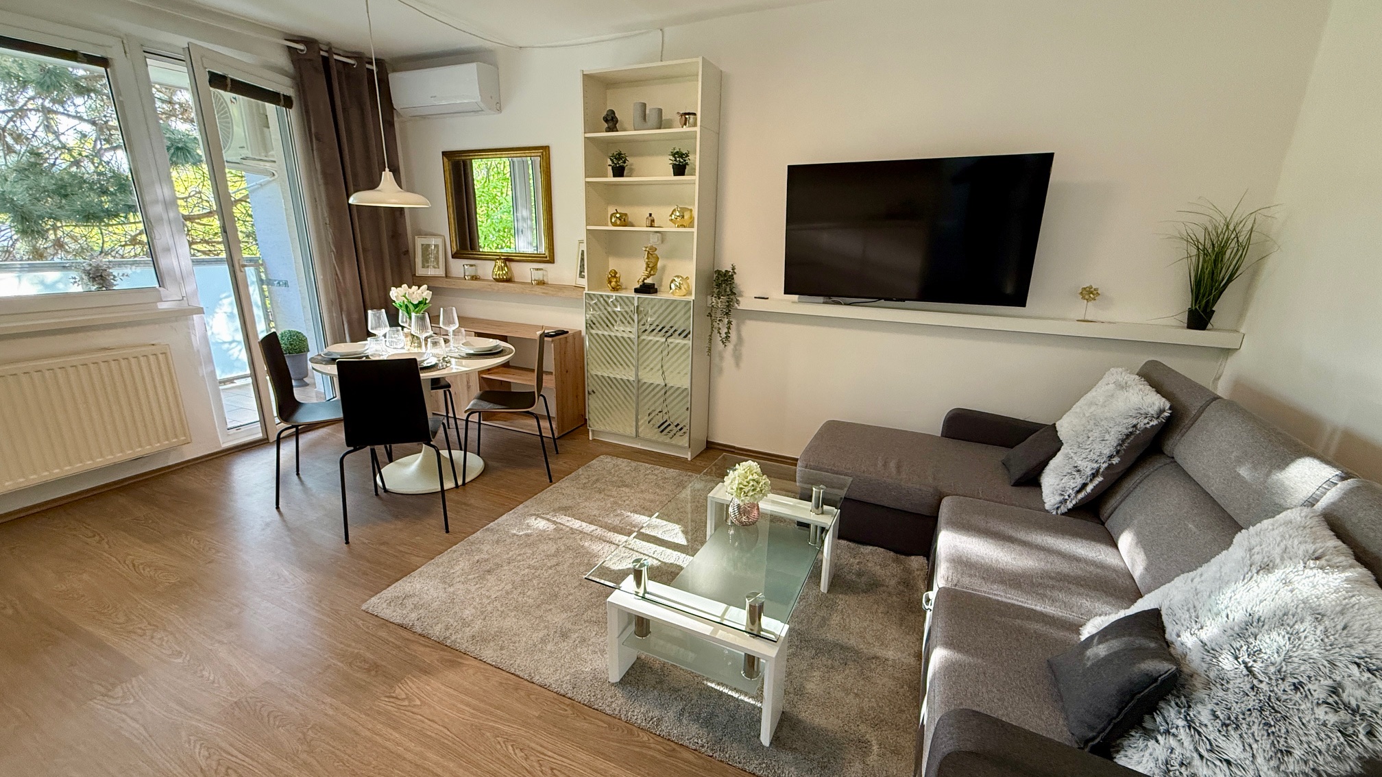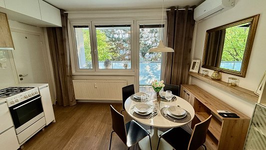 Ponúkam na nájom klimatizovaný, štýlovo zariadený 2-izbový byt v pokojnej mestskej časti Ružinova.