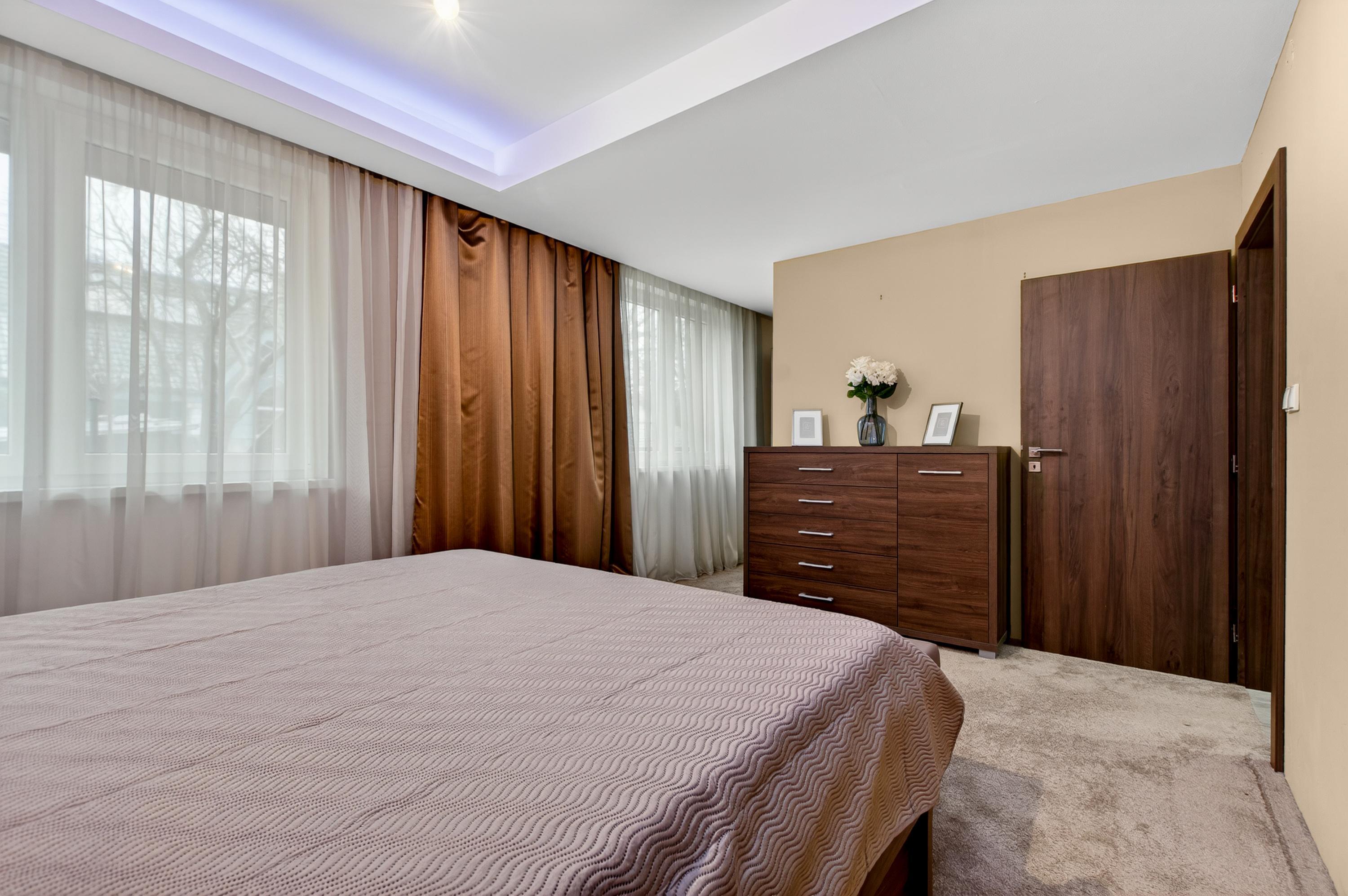 Exkluzívne ponúkam na predaj klimatizovaný, štýlovo zariadený výnimočný 3-izbový byt (prerobený na 2izb., aktuálne je priečka medzi izbami zrušená, čo sa dá za minimálnych nákladov vrátiť späť, sadrokartónom.) s predzáhradkou, situovaný v pokojnej časti Vrakune. Bytový dom sa nachádza v súkromnom spoločnom dvore uzatvorenom automatickou bránou od ulice s vlastným parkovaním. Vo dvore sú 4 rovnaké bytovky v každej je 6 bytov, čo garantuje majiteľovi pohodové rodinné bývanie bez ruchu mesta.