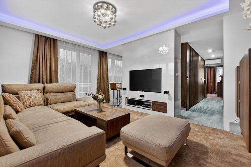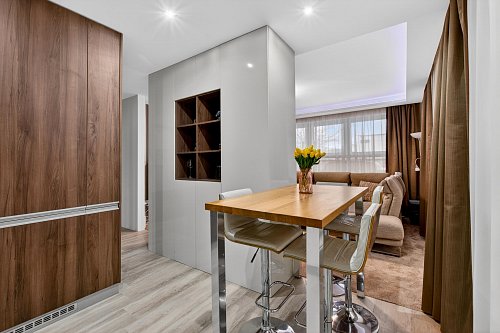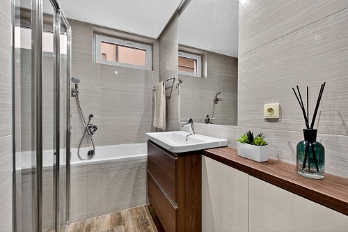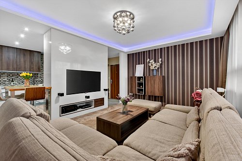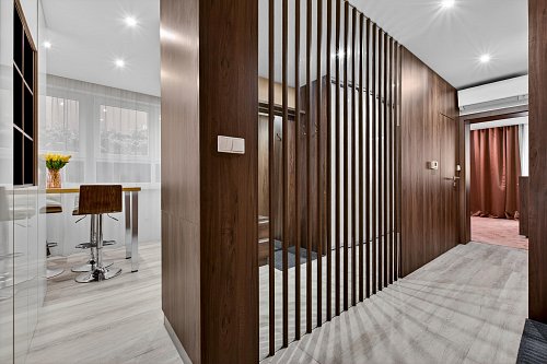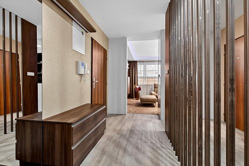 Z bytu srší perfektná atmosféra už pri prvej návšteve – po vstupe sa v ňom viete okamžite intuitívne zorientovať, akoby ste v ňom bývali už roky. Interiér je zladený do teplých tónov a farebnosti, ktoré vám ihneď evokujú domov.